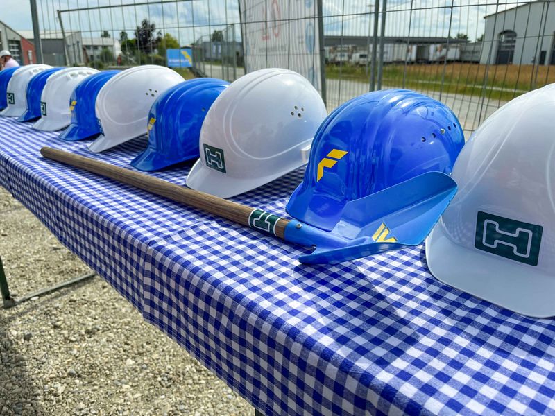 Gemeinsam mit Landrat Bernd Sibler und der Bürgermeisterin von Osterhofen Liane Sedlmeier feierten Vertreter der Hagn Umwelttechnik den Beginn der Bauarbeiten für den neuen Firmenstandort.